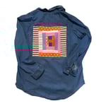 Upcycled shirt appliquéd with a unique log cabin quilt square.