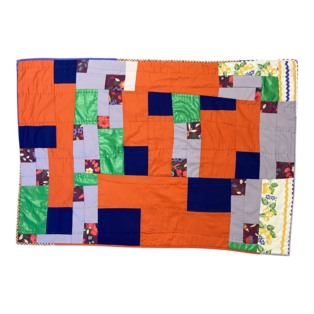This original design is machine pieced and hand quilted, ready to hang on the wall or drape on a side table or the back of a chair.